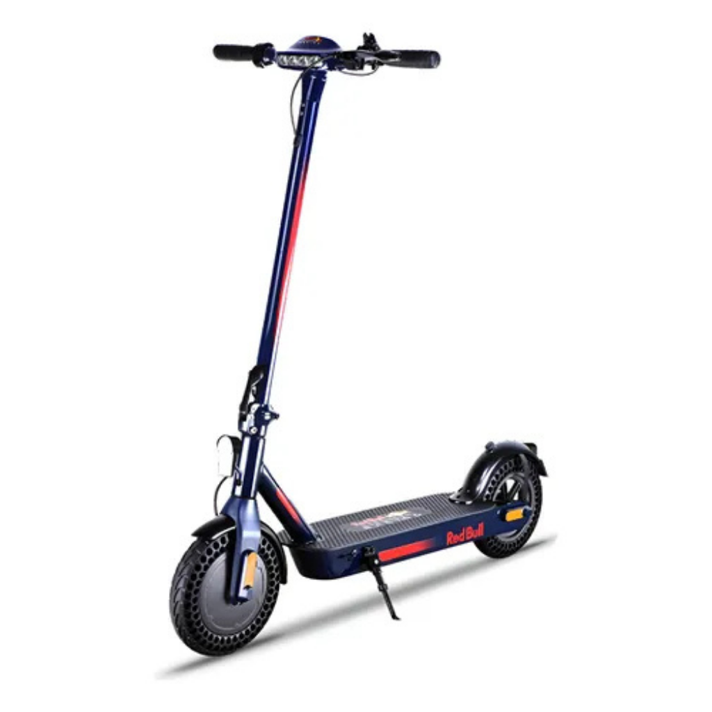 El Red Bull 10-75 es un monopatín eléctrico que combina estética moderna, practicidad y seguridad. Su motor de 350W y batería de 7.5Ah permiten desplazamientos ágiles de hasta 25 km por carga, ideal para trayectos urbanos. El sistema de frenos y las luces LED garantizan seguridad, mientras que su diseño plegable facilita guardarlo o transportarlo.